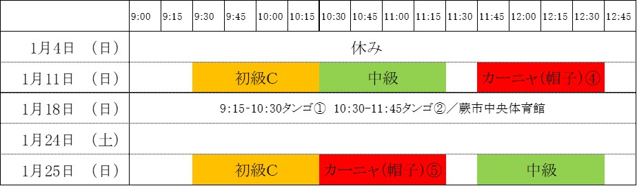 2026年1月レッスンスケジュール
